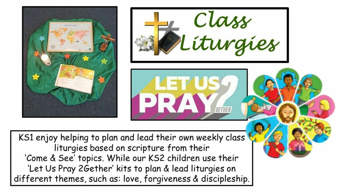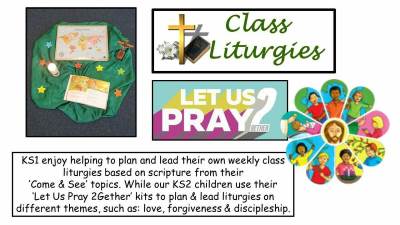 Each classroom has a ‘Sacred Space’ to enable children to explore faith and spirituality in a safe, creative and interactive way. Prayer is an integral part of the school day where all children are invited to participate in their own personal way. When possible, parents and carers are invited to join the children in prayer and acts of worship. “Stay and Pray” sessions are enjoyed across the school as well as liturgies at key times in the year. The children attend Mass with their class during the term and we celebrate whole school Masses at various points in the school year.