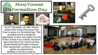 We believe that the Catholic Education that we offer at St Vincent’s develops the potential of each child. We share responsibility, along with parents and our parish community, for the education of our children and young people. Our ethos is built upon Christ’s message and is firmly embedded in everything we do: to love one another; to show kindness to all; to nurture and to grow.