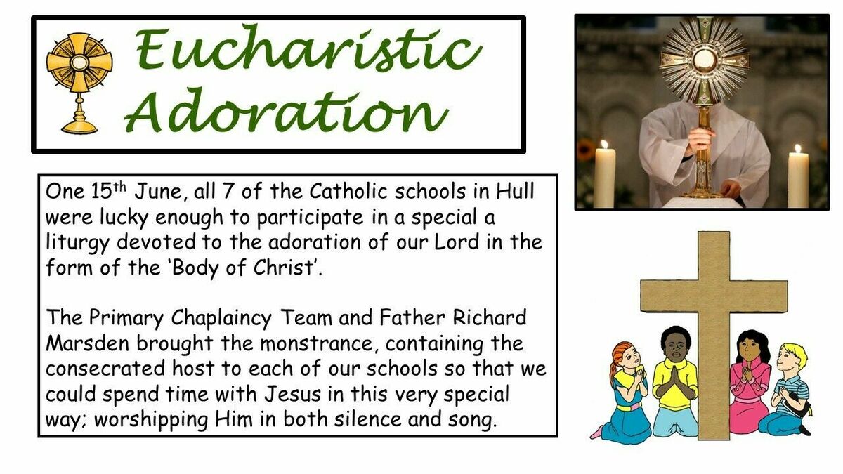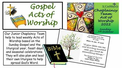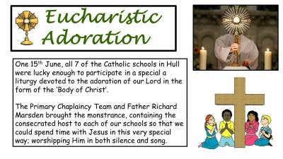 Each classroom has a ‘Sacred Space’ to enable children to explore faith and spirituality in a safe, creative and interactive way. Prayer is an integral part of the school day where all children are invited to participate in their own personal way. When possible, parents and carers are invited to join the children in prayer and acts of worship. “Stay and Pray” sessions are enjoyed across the school as well as liturgies at key times in the year. The children attend Mass with their class during the term and we celebrate whole school Masses at various points in the school year.