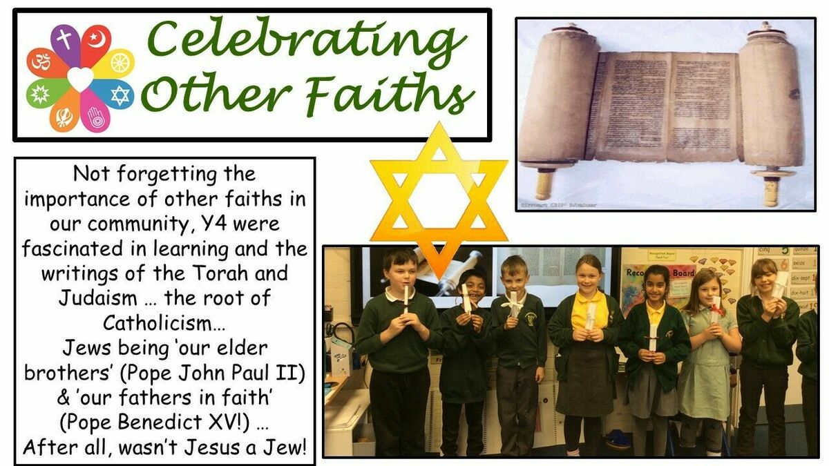 We also have a duty to foster an accurate and increasing understanding of religions and world views. As a result, pupils will gain greater insight into the world in which they are growing up in. They will also be able to appreciate the faith of others and develop a deeper understanding of their own beliefs and practices. These outcomes contribute to harmonious relationships within and between communities, promoting social inclusion and overcoming prejudice. We encourage our children to be good and positive citizens in the community in which they live, as well as looking after our common home- The Earth.